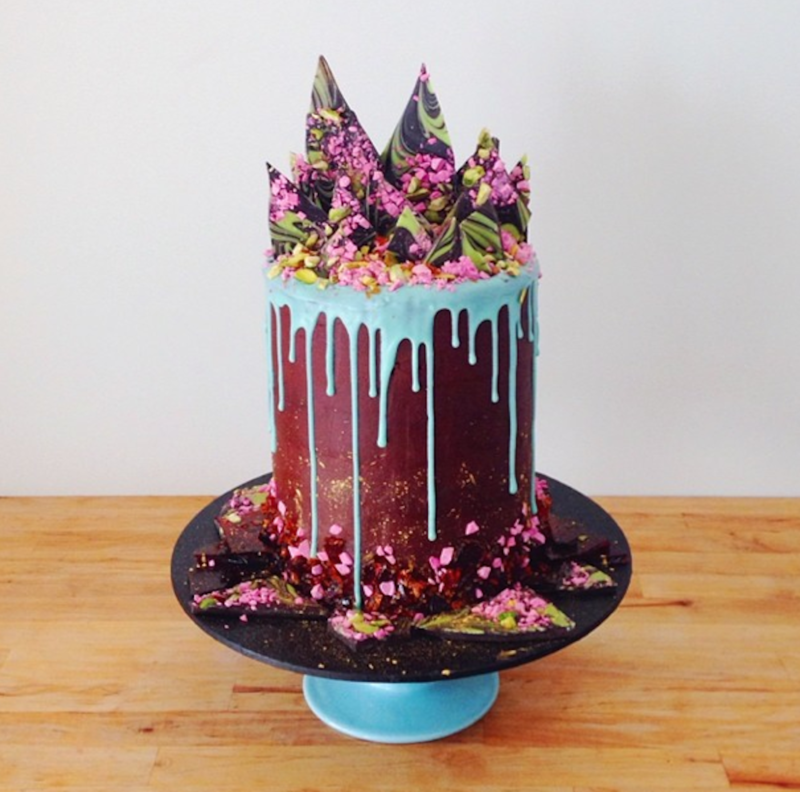 It's very apparent that Kat Sabbath's chosen cake shape is a tight, tall cylinder. And her style marries so well to this shape. Just look at how perfectly those drips cascade all the way down to the plate.